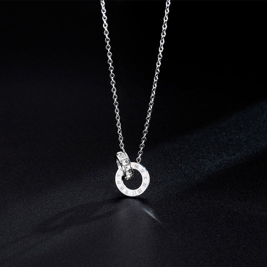 Geometric double ring titanium steel men's necklace collarbone chain short pendant jewelry